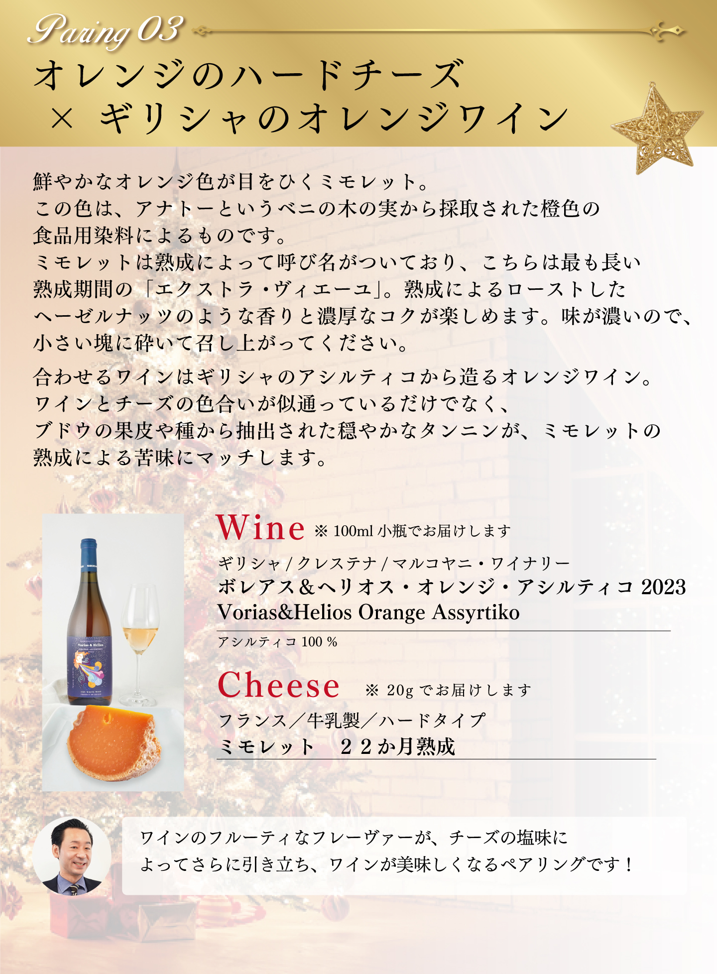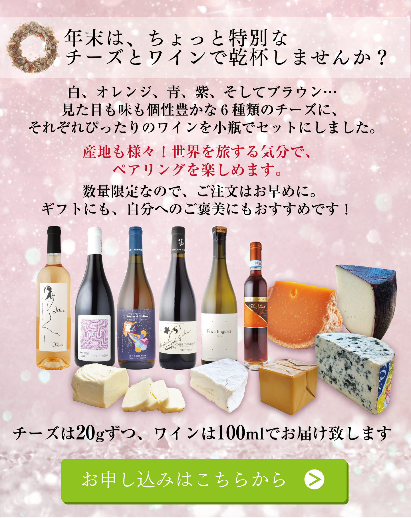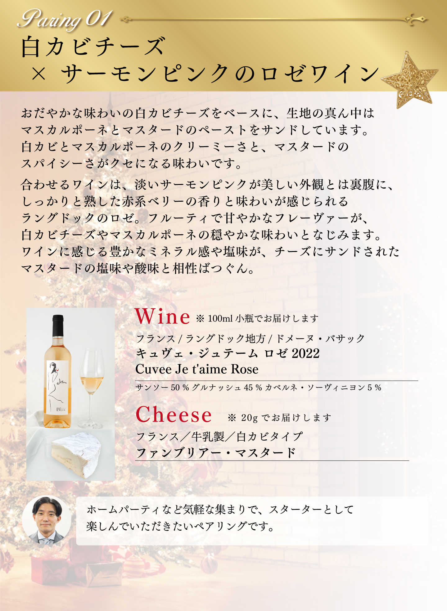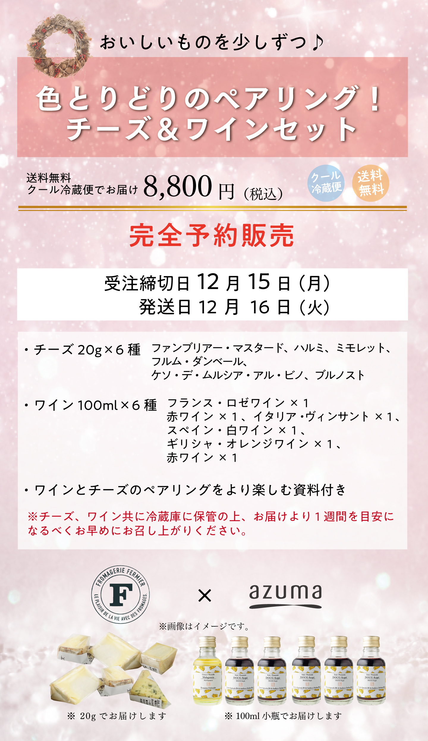 TOP チーズ・ワインセット おいしいものを少しずつ プロが選んだ チーズ・ワインセット2025 12月(チーズ20g×6種、ワイン 100ml×6種 ) 価格: ¥8,800 (税込) [ポイント還元 440ポイント~] 販売期間: 数量: セット 在庫: 3セット 在庫 3セット 返品についての詳細はこちら おいしいものを少しずつ プロが選んだ チーズ・ワインセット2025 12月(チーズ20g×6種、ワイン 100ml×6種 )