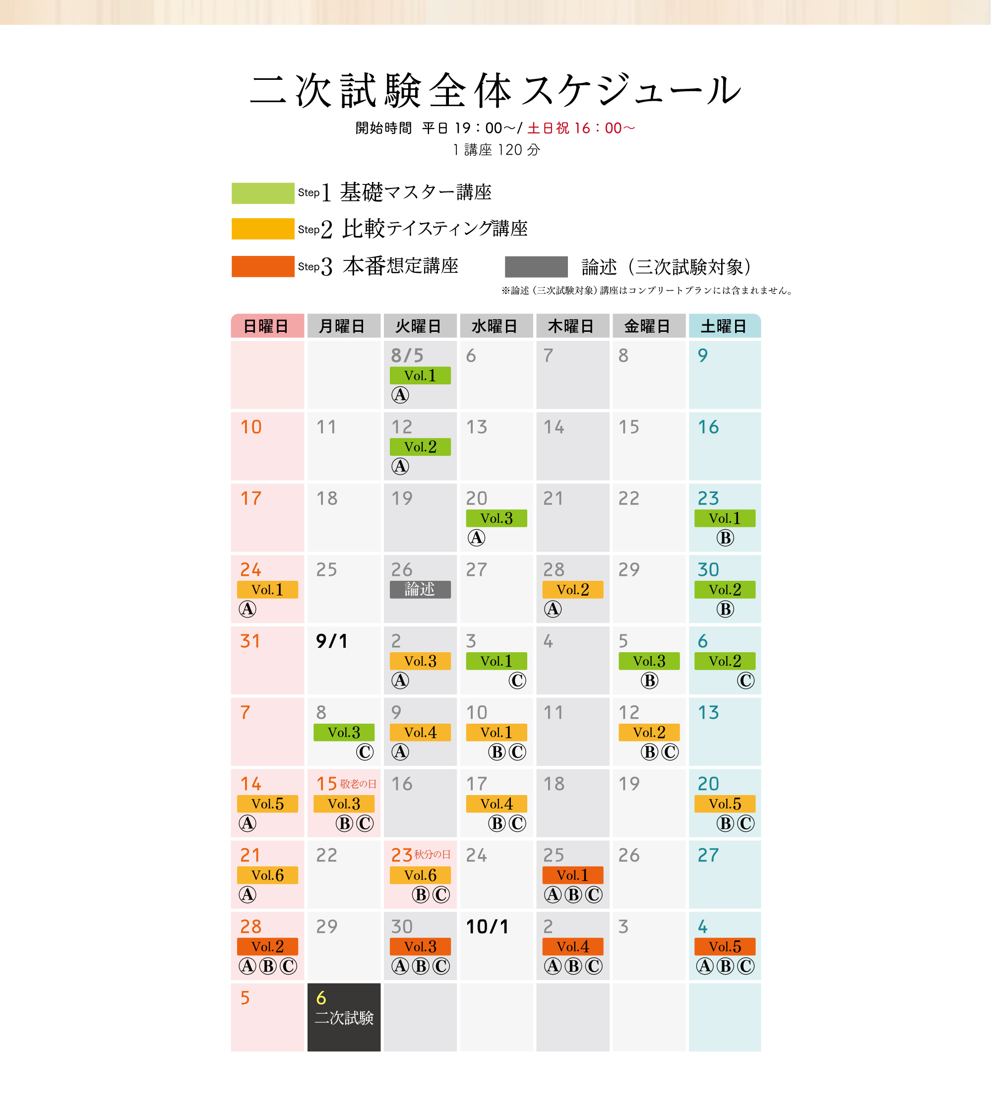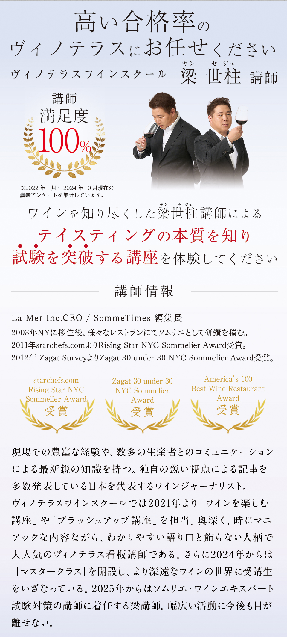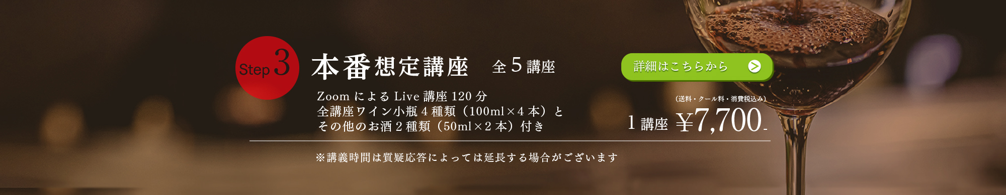 TOP ソムリエ・ワインエキスパート二次試験対策講座2025 表示切替: 写真のみ 説明付き 並び順: 標準 レビューの多い順 おすすめ商品順 新着商品順 値段の安い順 値段の高い順 名前:昇順 名前:降順 31件中1件~10件を表示 1 2 3 4 次へ 最後へ 商品一覧 在庫切れ ソムリエ・ワインエキスパート 二次試験対策 無料体験講座 ¥0(税込) 在庫切れ 【全14講座】 二次試験コンプリートプランA 8月5日(火)スタート 【各講座テイスティング用小瓶付き】 ¥98,000(税込) 在庫切れ 【全14講座】 二次試験コンプリートプランB 8月23日(土)スタート 【各講座テイスティング用小瓶付き】 ¥98,000(税込) 在庫切れ 【全14講座】 二次試験コンプリートプランC 9月3日(水)スタート 【各講座テイスティング用小瓶付き】 ¥98,000(税込) 在庫切れ 【8/5 (火)開催】基礎マスター講座 Vol.1A【白ワイン4種類付き】 ¥6,600(税込) 在庫切れ 【8/23 (土)開催】基礎マスター講座 Vol.1B【白ワイン4種類付き】 ¥6,600(税込) 在庫切れ 【9/3 (水)開催】基礎マスター講座 Vol.1C【白ワイン4種類付き】 ¥6,600(税込) 在庫切れ 【8/12 (火)開催】 基礎マスター講座 Vol.2A【赤ワイン4種類付き】 ¥6,600(税込) 在庫切れ 【8/30 (土)開催】 基礎マスター講座 Vol.2B【赤ワイン4種類付き】 ¥6,600(税込) 在庫切れ 【9/6 (土)開催】 基礎マスター講座 Vol.2C【赤ワイン4種類付き】 ¥6,600(税込) 31件中1件~10件を表示 1 2 3 4 次へ 最後へ