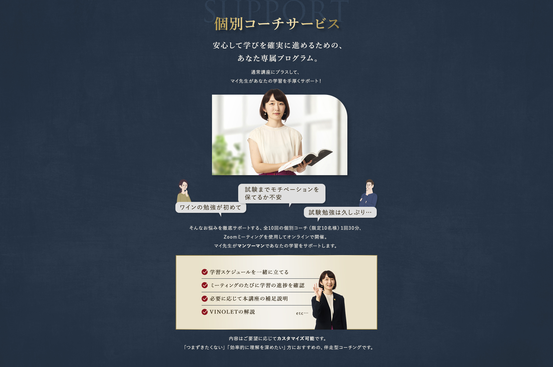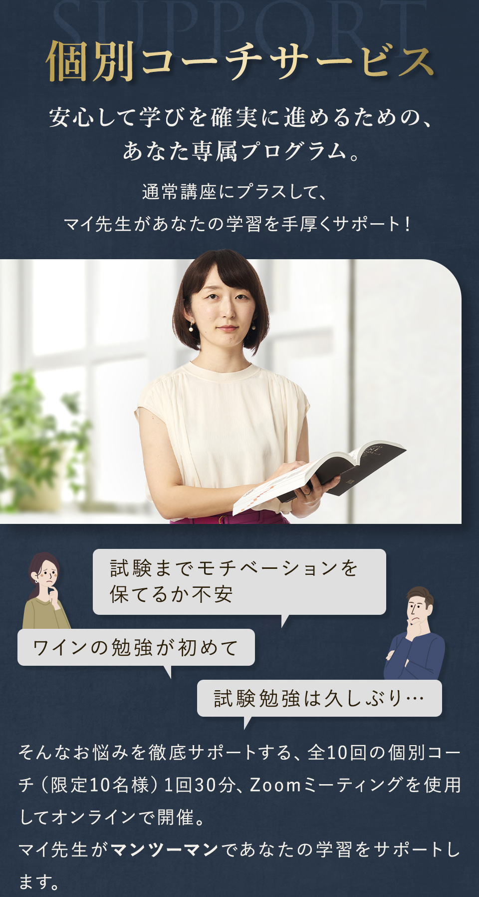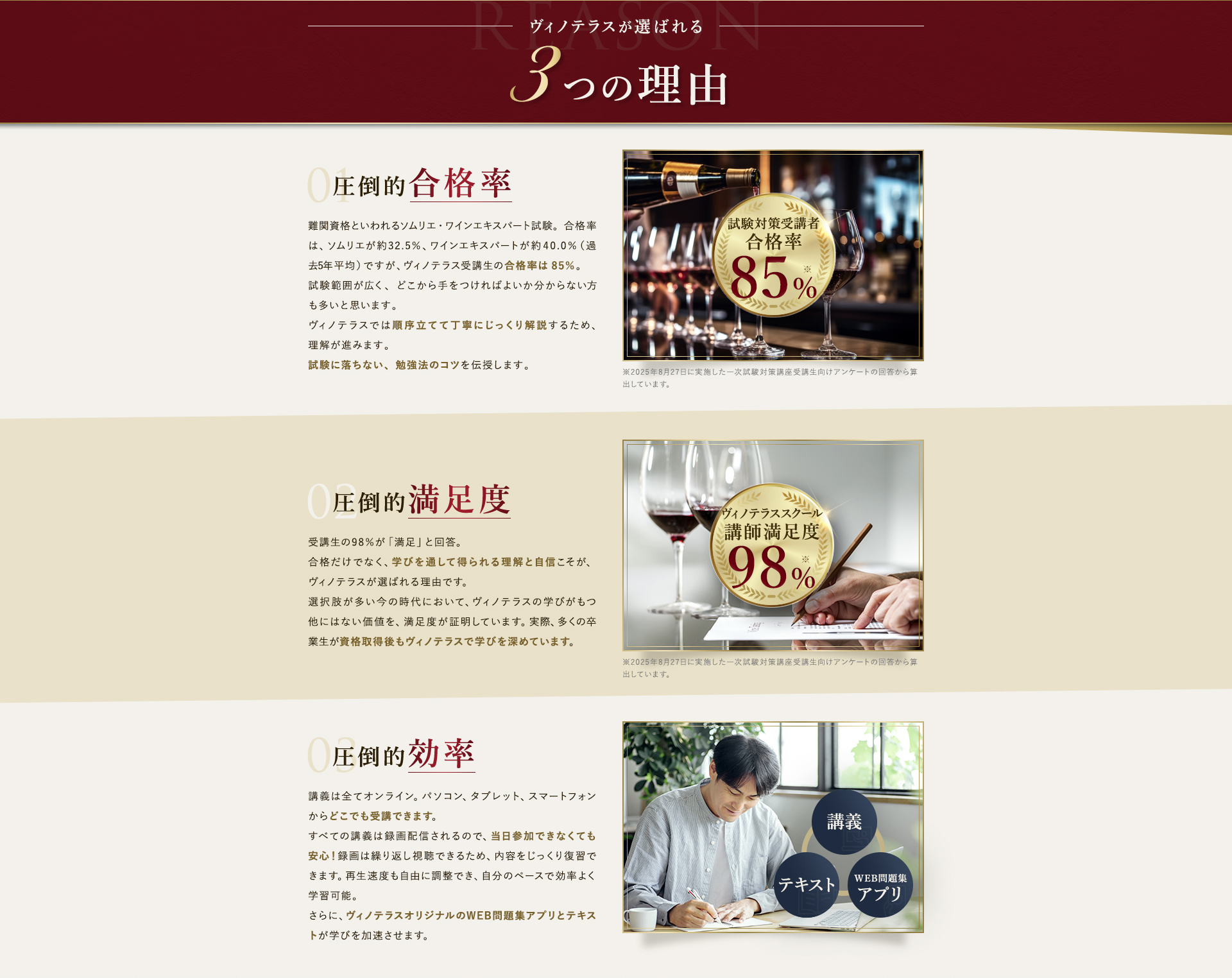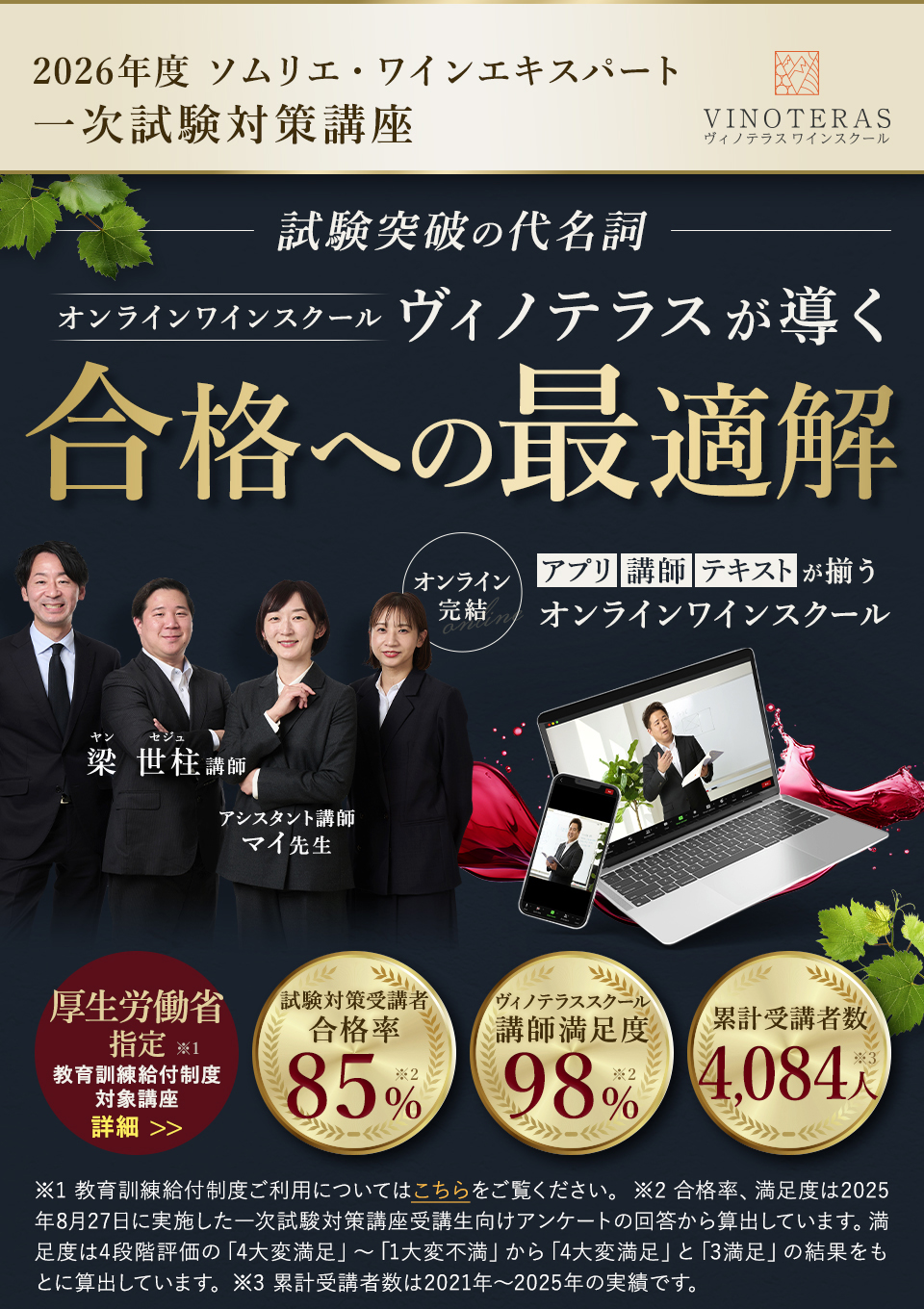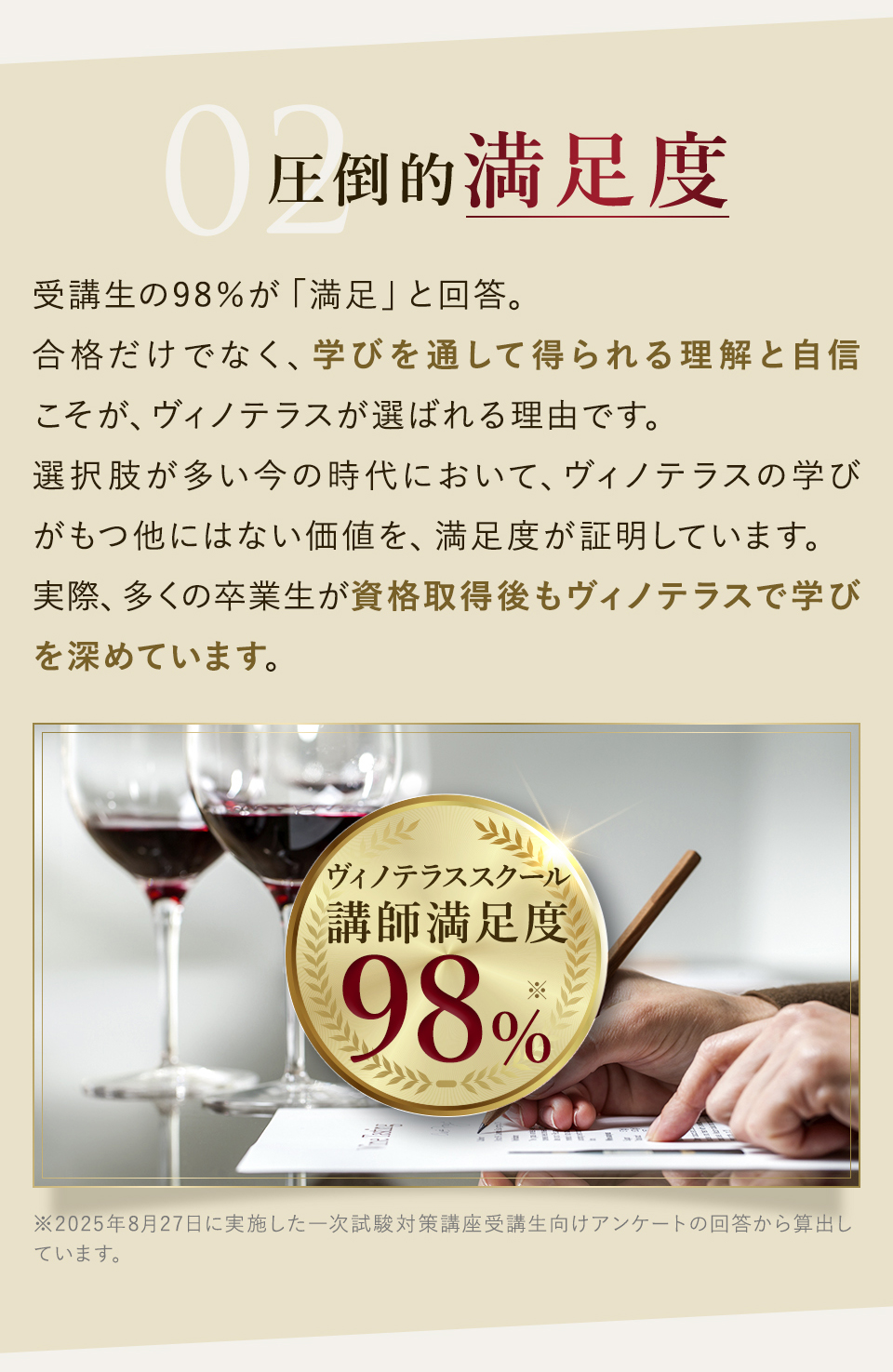 TOP ソムリエ・ワインエキスパート一次試験対策講座2026 表示切替: 写真のみ 説明付き 並び順: 標準 レビューの多い順 おすすめ商品順 新着商品順 値段の安い順 値段の高い順 名前:昇順 名前:降順 9件中1件~9件を表示 商品一覧 在庫切れ ソムリエ・ワインエキスパート試験対策無料体験講座 ¥0(税込) 【2026年度】【プレミアム】コンプリートコース(一次講座+二次講座(基礎編)+テキスト+VINOLET) ¥159,000(税込) 2026年度ソムリエ・ワインエキスパート試験対策講座 【2026年度】【プレミアム】一次試験対策講座(講座+テキスト+VINOLET) ¥125,000(税込) 2026年度ソムリエ・ワインエキスパート試験対策講座 【2026年度】【スタンダード】コンプリートコース(一次講座+二次講座(基礎編)+テキスト+VINOLET) 通常価格: ¥98,000(税込) 価格: ¥88,000(税込) 2026年度ソムリエ・ワインエキスパート試験対策講座 【2026年度】【スタンダード】一次試験対策講座(講座+テキスト+VINOLET) 通常価格: ¥59,000(税込) 価格: ¥49,000(税込) 2026年度ソムリエ・ワインエキスパート試験対策講座 【2026年度】【独学】コンプリートコース(テキスト+VINOLET+二次講座(基礎編)) ¥55,000(税込) 2026年度ソムリエ・ワインエキスパート試験対策講座 【2026年度】二次試験対策講座(基礎編) ¥44,000(税込) 2026年度ソムリエ・ワインエキスパート試験対策講座 【テキスト(2025年+2026年)】+【VINOLET】 ¥11,700(税込) 2026年度ソムリエ・ワインエキスパート試験対策講座 【2026年度】WEB問題集アプリ「VINOLET」トークン購入 ¥4,500(税込) 2026年度ソムリエ・ワインエキスパート試験対策講座 9件中1件~9件を表示