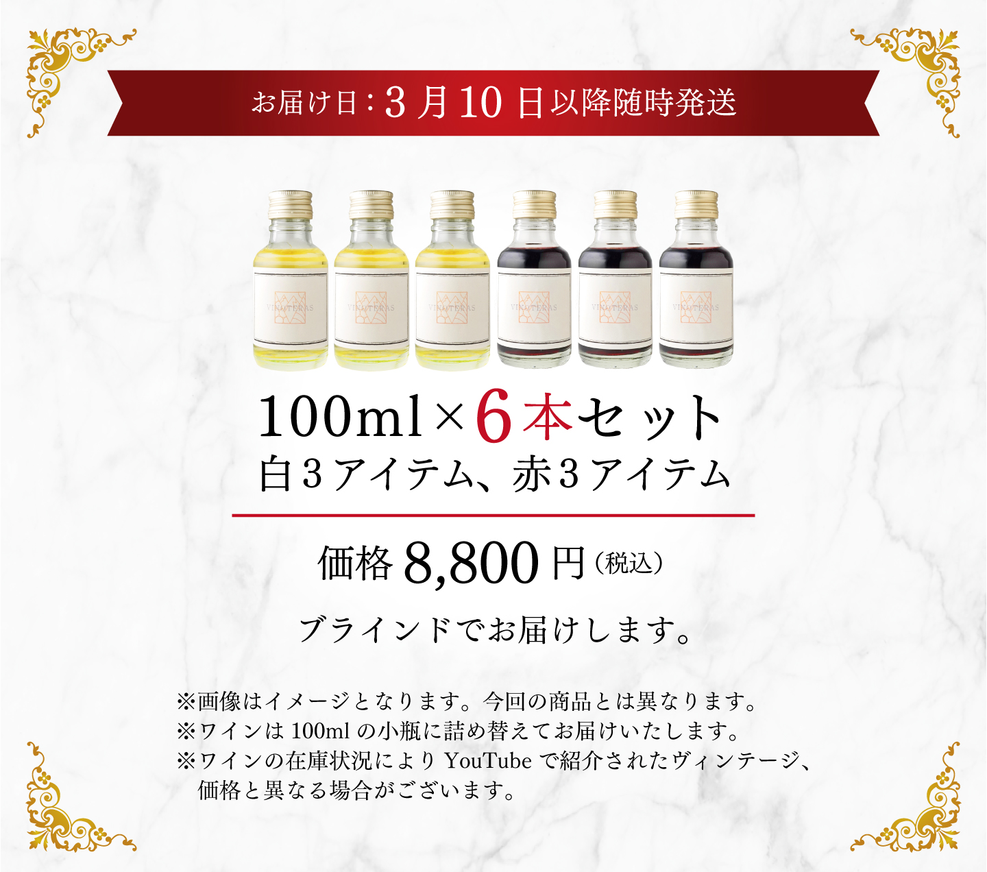 TOP Blind Wine Tastingセット Blind Wine Tasting 小瓶6本セット 第6弾 価格: ¥8,800 (税込) [ポイント還元 440ポイント~] 販売期間: 数量: セット 在庫: 25セット 在庫 25セット 返品についての詳細はこちら Blind Wine Tasting 小瓶6本セット 第6弾