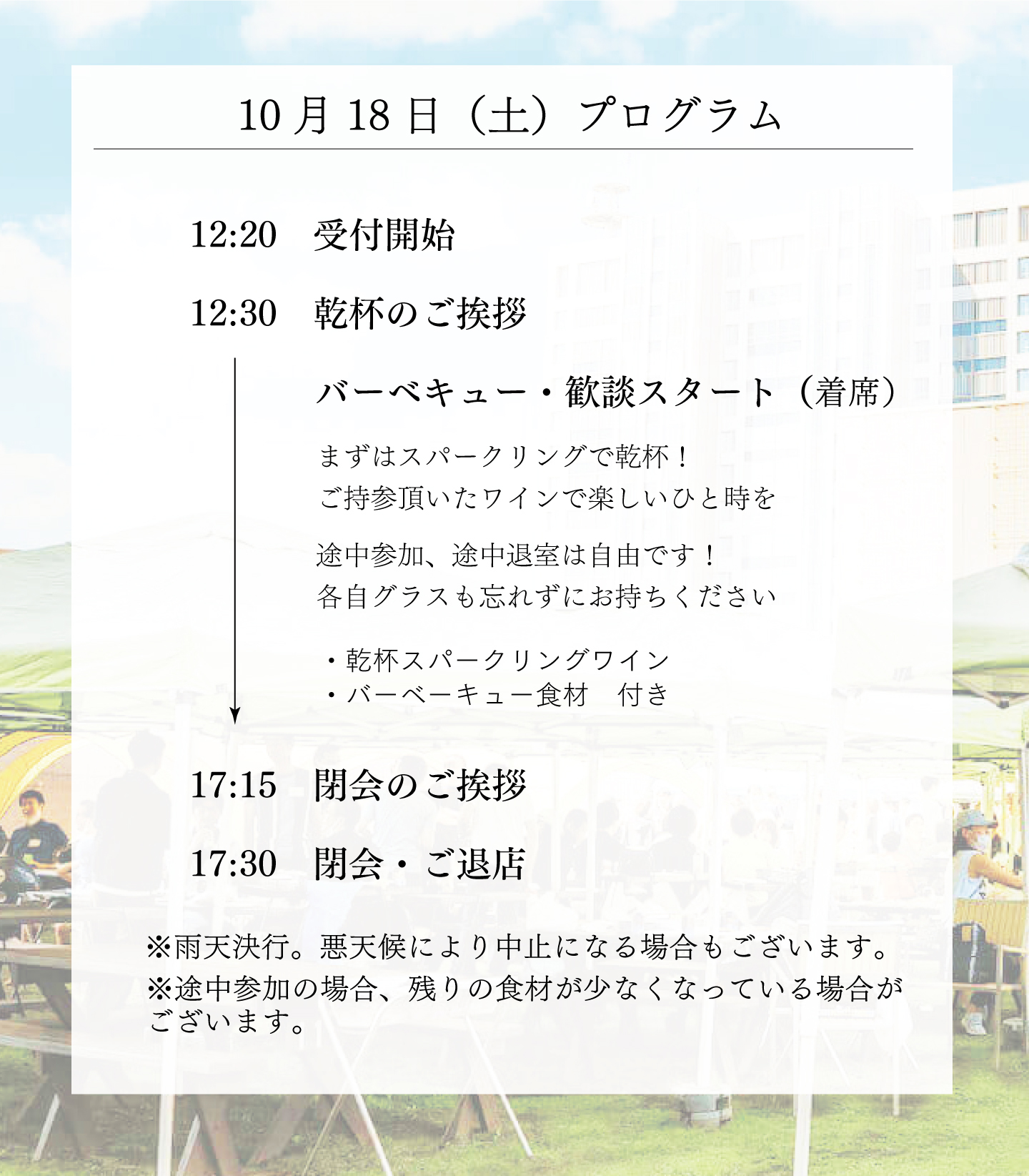 お申し込みキャンセルをご希望の場合、10月5日(日)までにヴィノテラス事務局までご連絡ください。