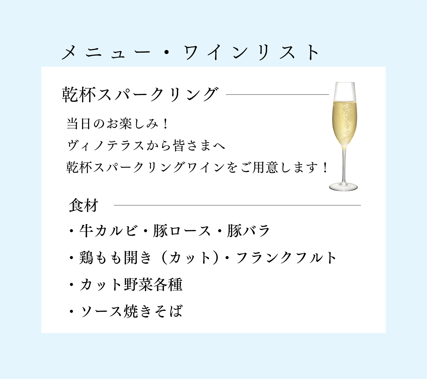 ヴィノテラスから皆さまへ乾杯スパークリングワインをご用意します!