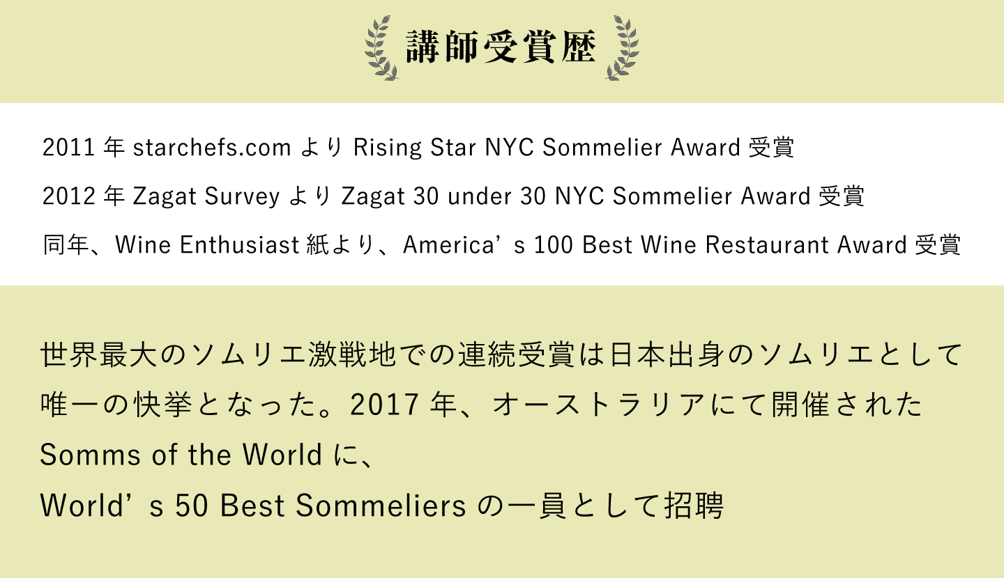 世界最大のソムリエ激戦地・ニューヨークでの連続受賞は日本出身のソムリエとして唯一の快挙となった。