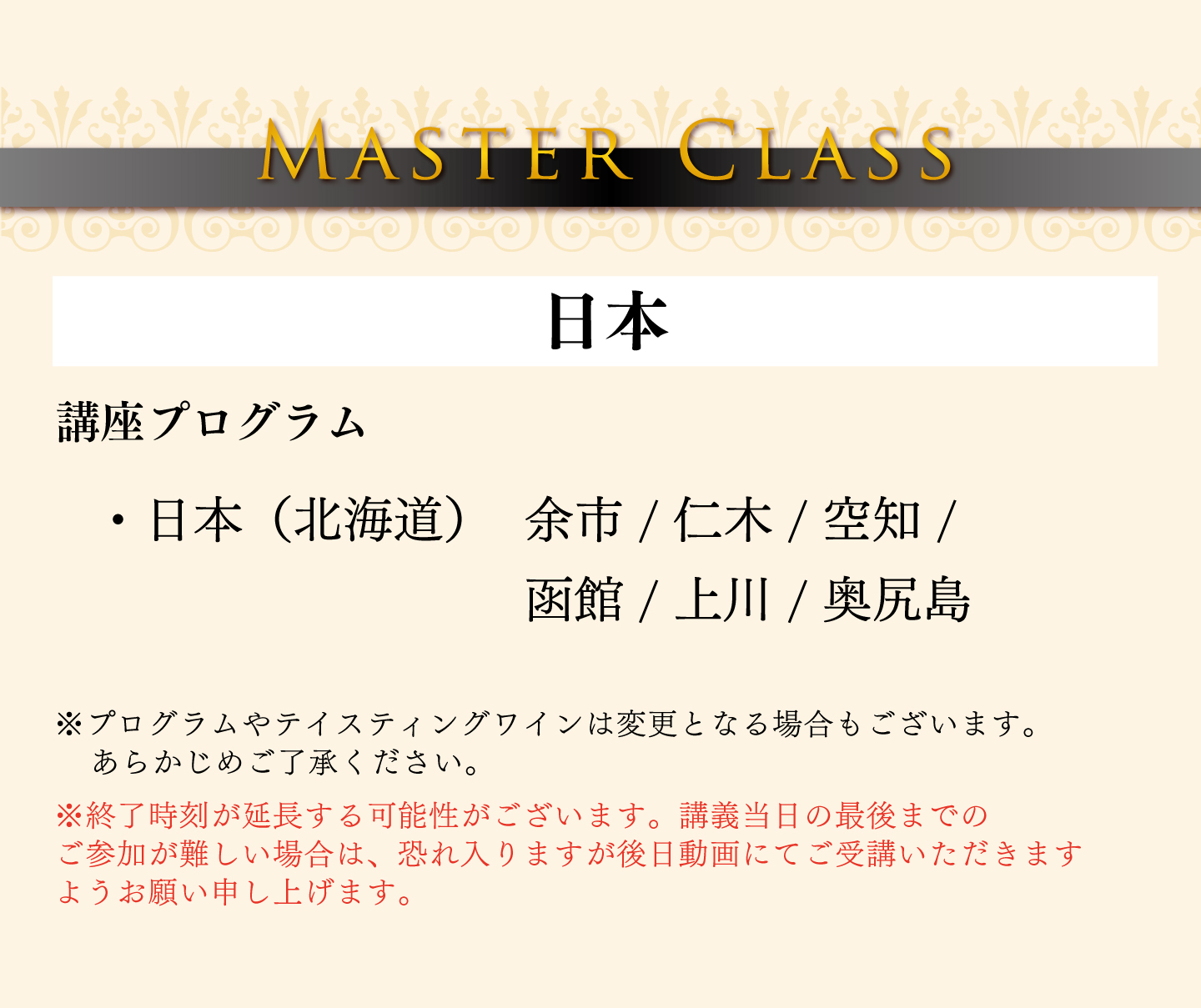 ※プログラムやテイスティングワインは変更となる場合もございます。あらかじめご了承ください。