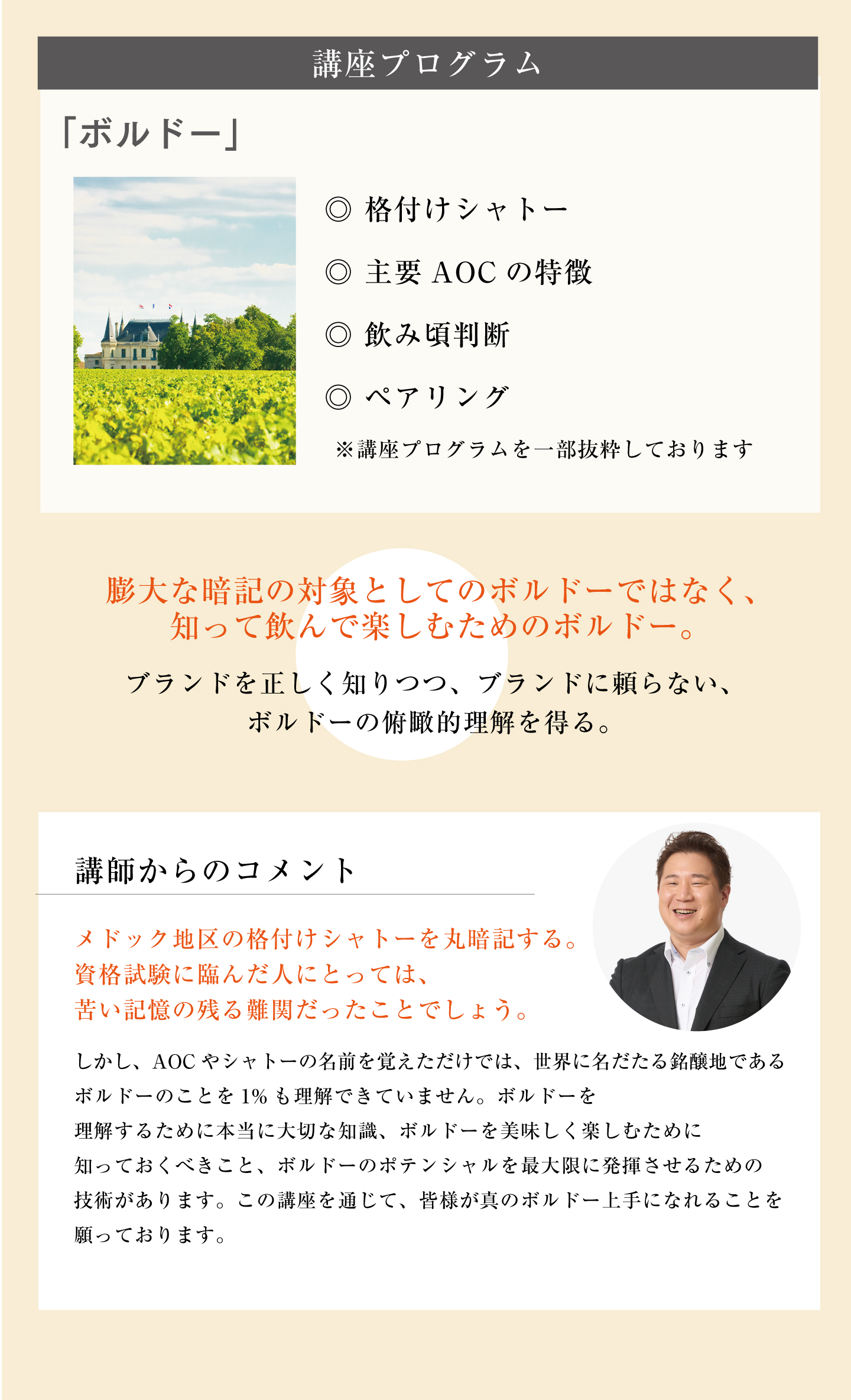 この講座を通じて、皆様が真のボルドー上手になれることを願っております。