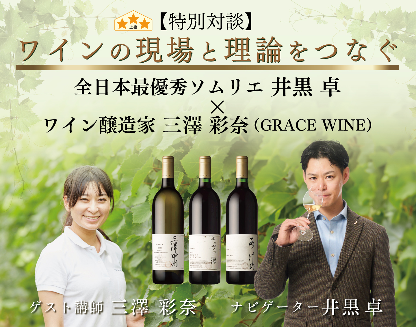 全日本最優秀ソムリエ 井黒 卓×ワイン醸造家 三澤 彩奈(GRACE WINE)