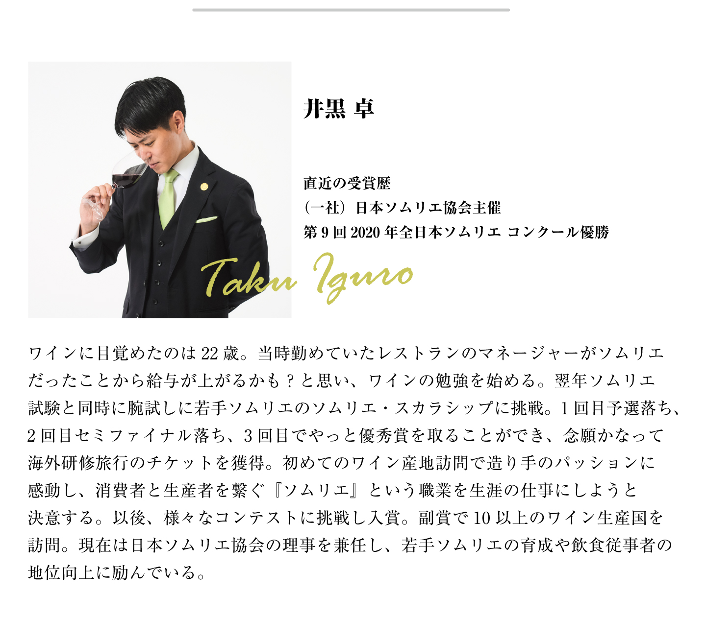 井黒 卓 ソムリエからのコメント