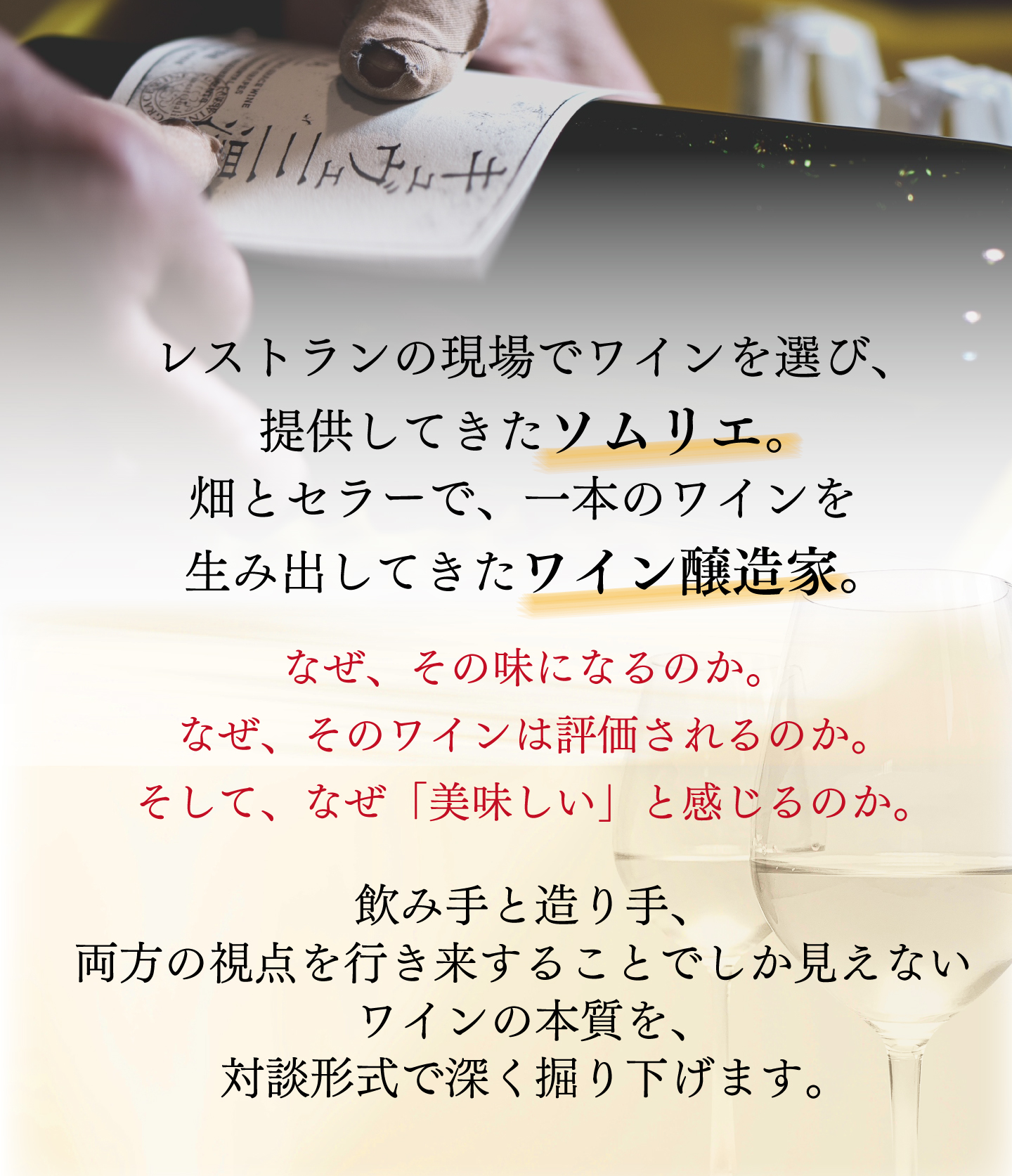 ワインの本質を、対談形式で深く掘り下げます。