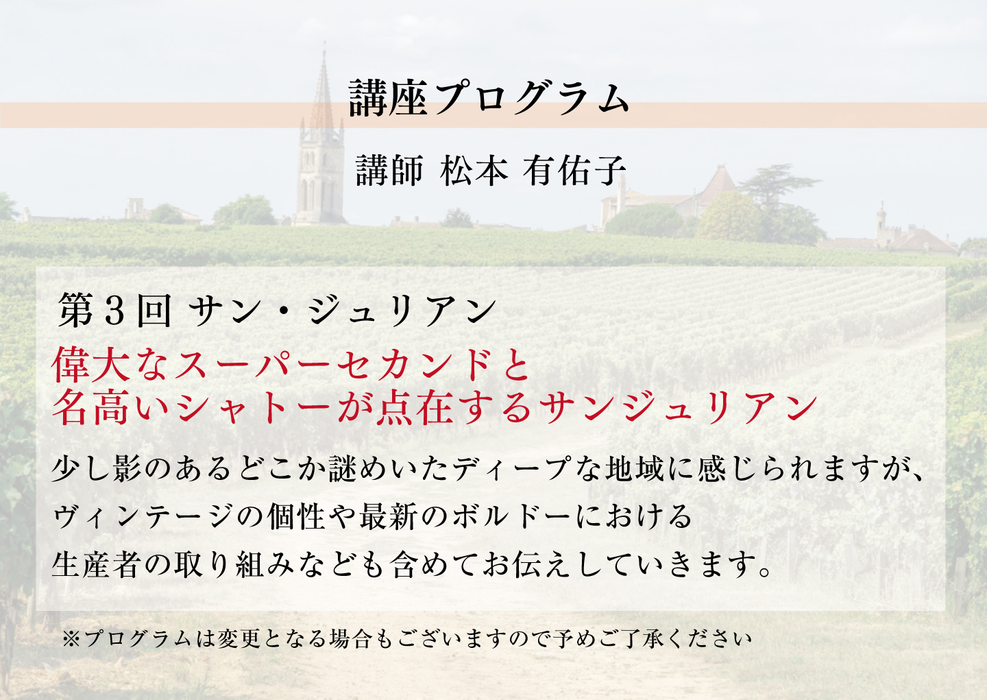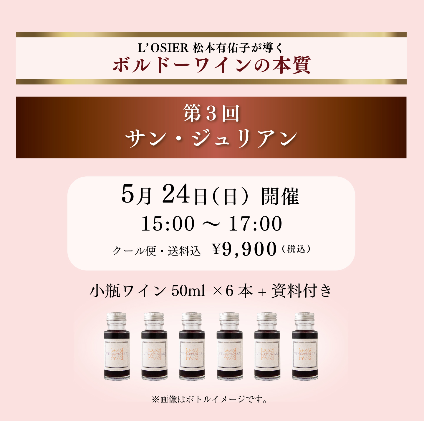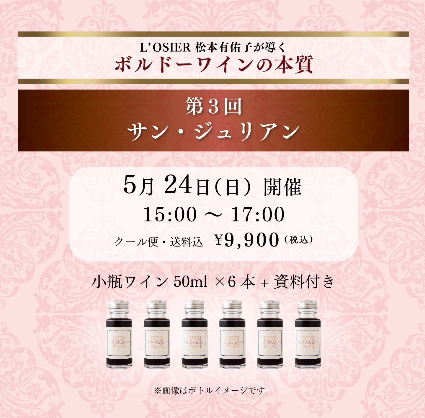 <各講座小瓶ワイン50ml×6本セット付き>