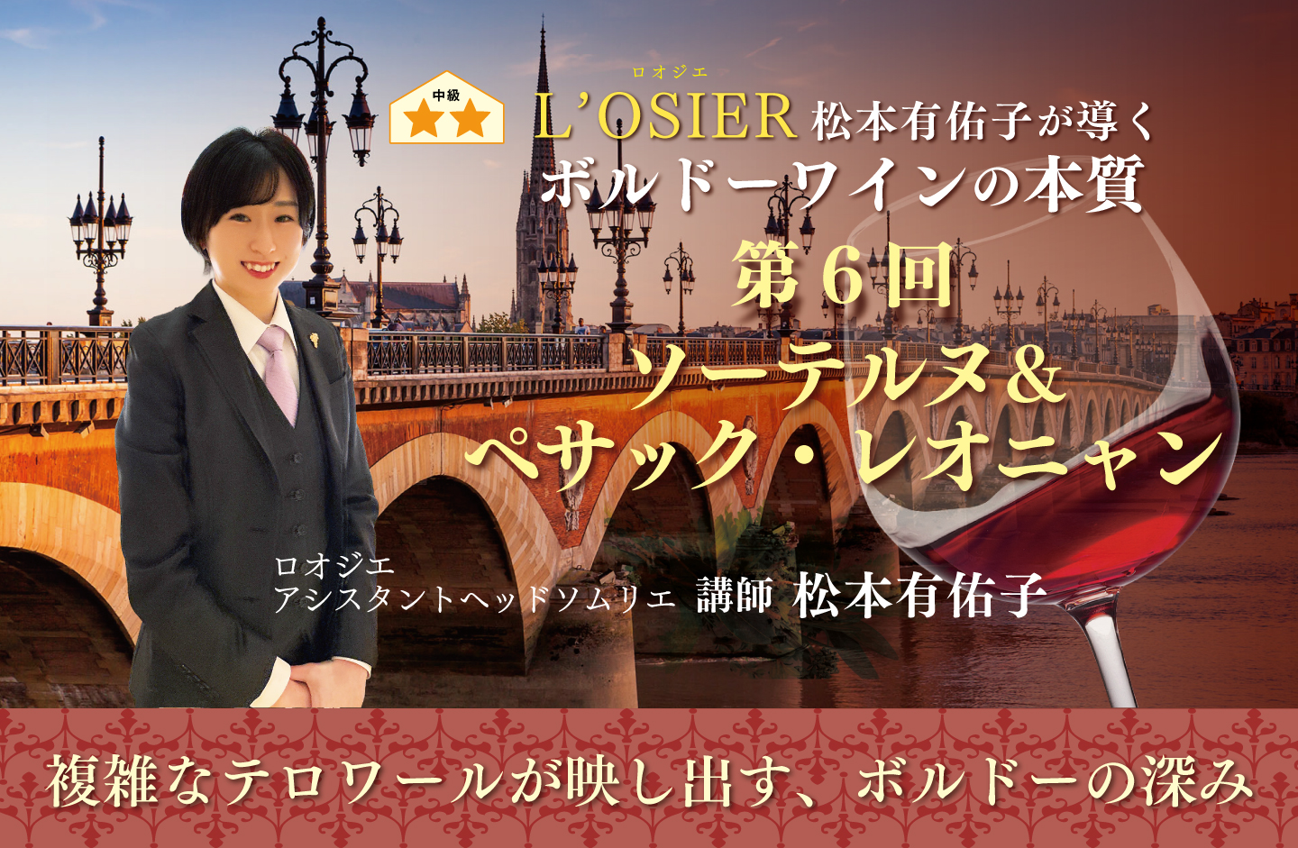 三ツ星フレンチレストラン「ロオジエ」の現役ソムリエであり、ボルドーワイン委員会2025年プロフェッショナル・アンバサダーを務めた松本有佑子が、格付けの先にある“今”のボルドーを紐解きます。