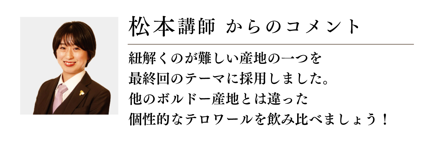 誰もが憧れる世界で最も有名であろう甘美な液体をテロワールから紐解き理解を深め、ボルドー産地の魅力を網羅できる最終回です。