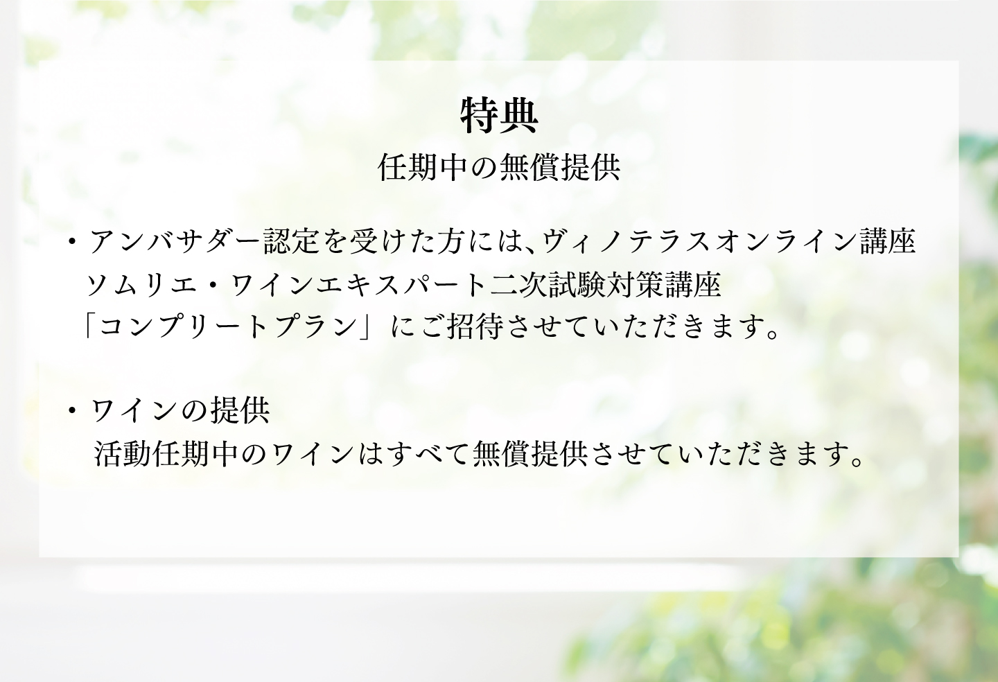 ヴィノテラス公式アンバサダーとして選ばれた方には